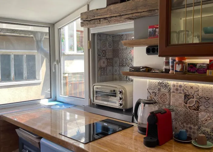 Acest apartament include o bucătărie complet utilată cu aer conditionat pentru un confort maxim.